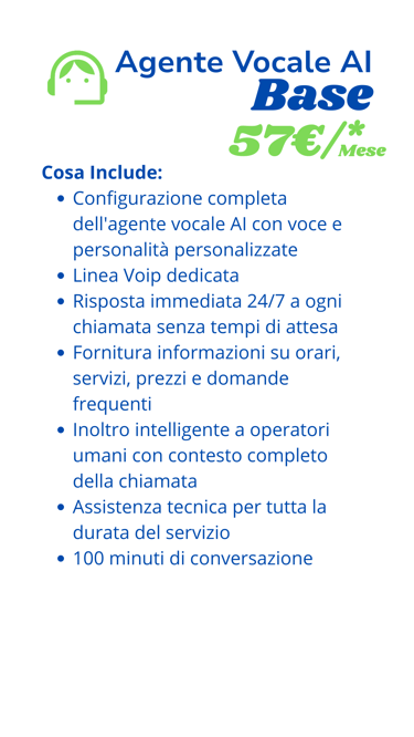 Analizziamo il tuo brand e la tua attività e creiamo un assistente personalizzato con voce (uomo/donna), tono comunicativo su misura per te.
