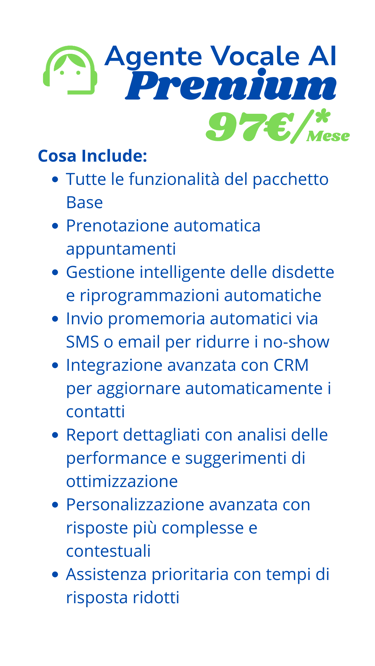 Un sistema intelligente che risponde alle chiamate, fornisce informazioni e fissa appuntamenti. Con numero VoIP dedicato e integrazioni con Google Calendar e CRM. Mai più chiamate perse.